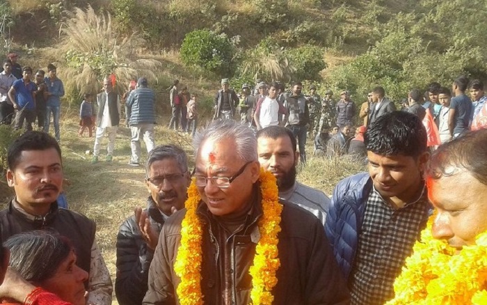विर्तादेउराली, काभ्रे । काभ्रेको प्रतिनिधिसभा निर्वाचन क्षेत्र नम्बर १ अन्तर्गत पर्ने कात्तिकेदेउरालीको चुनावी सभालाई सम्बोधन गर्न जाने क्रममा माओवादी केन्द्रका वरिष्ठ नेता रामबहादुर थापा बादल, उम्मेदवारहरु बमध्वज र रत्न ढकाल, एमाले नेता पशुपति चौंलागाई लगायतको टोलीलाई स्थानीयबासीले भब्य स्वागत गरेका छन् ।