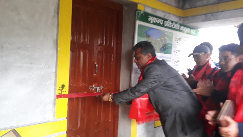 आर्सो नेपालको साझेदारी र मर्सिकोर नेपालको आर्थिक सहयोगमा निर्माण गरिएको नमुना भवन हस्तान्तरण कार्यक्रममा सहभागि स्थानीय र अतिथि