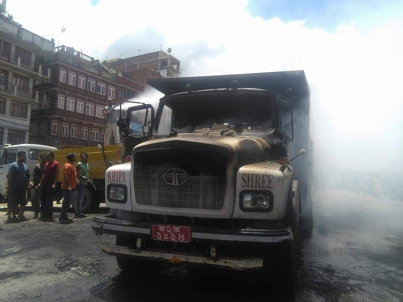 इलाका प्रहरी कार्यालय बनेपाले ठक्कर दिने टिपर चालकलाई नियन्त्रणमा लिएको छ । आक्रोसित भिडले ठक्करदिने टिपरमा आगजनी समेत गरेका छन् ।