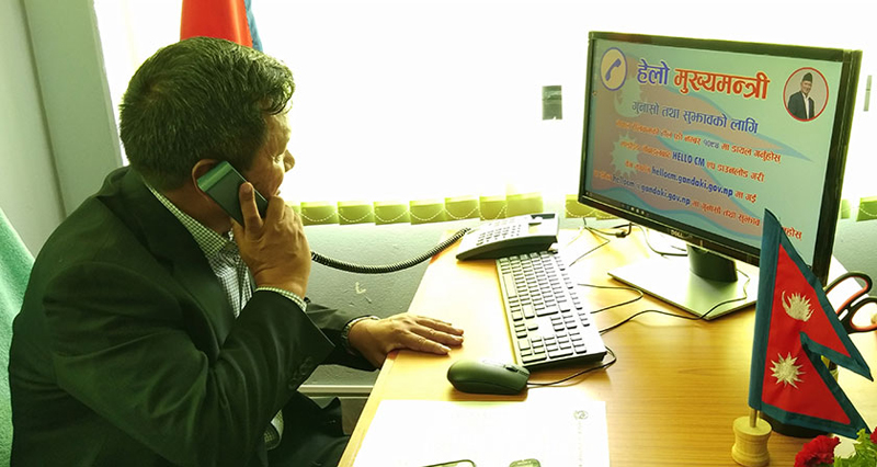 प्रदेश सरकारका काम कारवाहीका साथै सुझाव, प्रतिक्रिया, गुनासो सम्बोधनका लागि हेल्लो मुख्यमन्त्री कार्यक्रम सञ्चालन गरिएको मुख्यमन्त्री पृथ्वीसुब्बा गुरुङले बताउनुभयो । सेवाको प्रभावकारिता र सुशासनका लागि यो कार्यक्रम महत्वपूर्ण बन्ने विश्वास व्यक्त गर्दै उहाँले यसले जनता र नेताबीचको सम्बन्ध अझै नजिक र प्रगाढ बनाउने बताउनुभयो ।