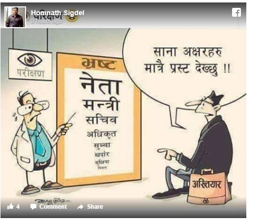 काठमाडौं, ५ भदौ । फेसबुकमा कार्टुन सेयर गर्दा एक जना सरकारी कर्मचारी पक्राउ परेका छन् । काभ्रेको रोशी गाउँपालिका ५ का वडासचिव होमनाथ सिग्देललाई महानगरीय अपराध महाशाखाले पक्राउ गरेको हो । नकारात्मक दृष्टिकोणले समाजमा भ्रम फैलिने गरी कार्टुन सेयर गरेको आरोपमा उनलाई पक्राउ गरेको महाशाखाका प्रहरी उपरीक्षक (एसपी) नरेन्द्रप्रसाद उप्रेतीले जानकारी दिए ।