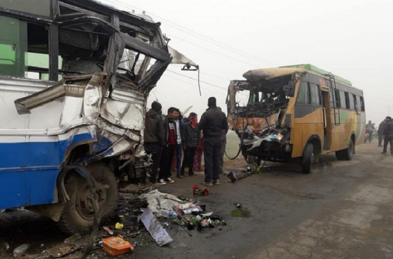 नेपालगञ्जदेखि सुर्खेत आउँदै गरेको बा३ख ६२१२ र सुर्खेतबाट नेपालगञ्जतर्फ जाँदै गरेको ना४ख ७०२४ नं को यात्रुबाहक बस आज दिउँसो सुर्खेतको सुब्बाकुना नजिक बिउरेनी मोडमा ठोक्किएको जिल्ला प्रहरी कार्यालय सुर्खेतका प्रहरी प्रमुख प्रहरी उपरीक्षक वसन्त रजौरेले जानकारी दिनुभयो ।