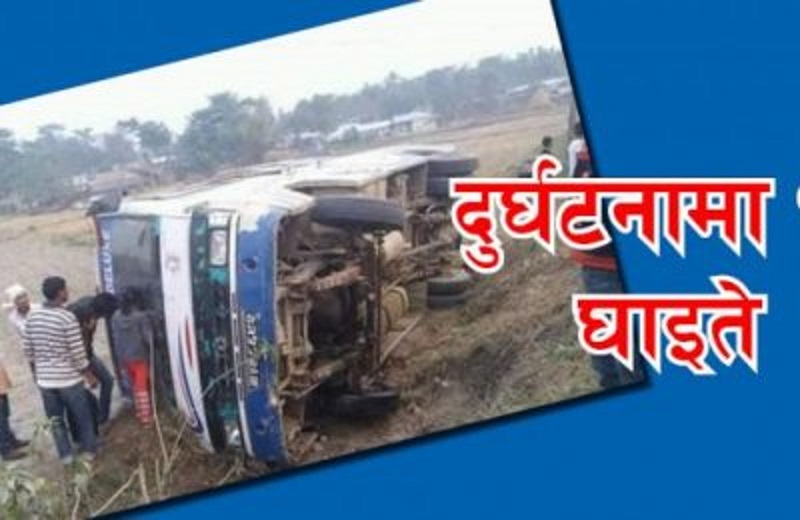सर्लाहीमा बस दुर्घटना–दुईको मृत्यु, २३ घाइते