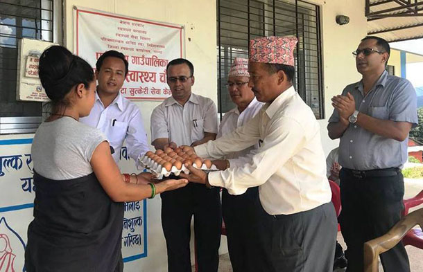 गर्भवती स्याहार प्रोत्साहन कार्यक्रम सञ्चालनअन्तर्गत सो व्यवस्था गरिएको हो । कार्यक्रमअन्तर्गत पहिलो पटक गर्भजाँच गराउनेलाई एक क्रेट अण्डा निःशुल्क उपलब्ध गराउने व्यवस्था गरिएको हो ।