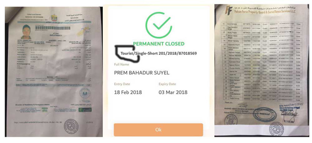निग्मा, पूर्णबहादुर, फुर्बा र निमाका उदाहरणले भ्रमणका कागज बनाएर नेपालीलाई लाँदा ठूलो मात्रामा पैसा असुल्ने गरेको देखाएको छ। उनीहरूलाई सेक्युरिटी गार्डको काम भनेर नक्कली रोजगार भिसा बनाई ३० दिने भिजिट भिसामा दुबई ल्याइएको थियो। सेक्युरिटी गार्डको जागिरमा सुविधा राम्रो हुने भएकाले यति धेरै पैसा लिने गर्छन्। तर, उनीहरूलाई घुम्न जाने भिसामा छिराइएको थियो।