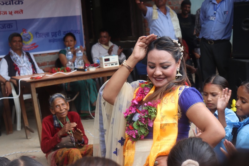 जिल्ला प्रहरी कार्यालय काभ्रेपलाञ्चोक र खानीखोला गाउँपालिकाको संयुक्त आयोजनामा भएको सचेतना कार्यक्रममा नेता, सिडियो–एसपी र कलाकार सबै नाचेर भरपुर मनोरञ्जन लिएका छन् ।