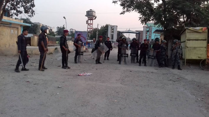 कपिलवस्तु, ५ कात्तिक: दुर्गा भवानीको मूर्ति सेलाउने क्रममा कपिलवस्तुको कृष्णनगरमा विवाद हँुदा कपिलवस्तु प्रशासनले आइतबारदेखि कफ्र्यु लगाएको छ । शुक्रबारदेखि कृष्णनगर तनावग्रस्त बनेको थियो । विवाद तीन दिनसम्म पनि साम्य नभएपछि स्थिति नियन्त्रणमा लिन आइतबार साँझ ५ बजेबाट अनिश्चितकालीन कफ्र्यु लगाइएको हो । तीन दिनदेखि रोकिएको मूर्ति विर्सजन कार्य कडा सुरक्षाका साथ मूर्ति विर्सजन गरिएको प्रहरी नायब उपरीक्षक रवि रावलले जानकारी दिनुभयो ।