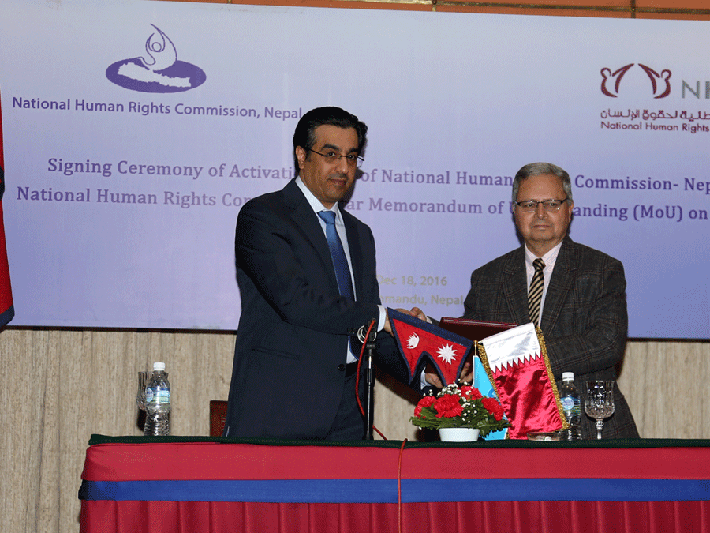 कतार, १३, कार्तिक: नेपाल र कतारबीच सहमति र समझदारी सम्बन्धी छुट्टाछुट्टै दुई पत्रमा हस्ताक्षर भएको छ । राष्ट्रपति विद्यादेवी भण्डारीको कतार भ्रमणको दोस्रो दिन उक्त पत्रहरूमा हस्ताक्षर भएको हो । नेपाल र कतारबीच कूटनीतिक, सरकारी र विशेष राहादानी बाहकलाई प्रवेशआज्ञाविना आवाजजावतको सहजीकरण गर्ने विषयमा सहमति भएको छ। सो सहमतिपत्रमा नेपालकातर्फबाट परराष्ट्रमन्त्री प्रदीपकुमार ज्ञवाली र कतारका तर्फबाट उपप्रधान तथा विदेश मन्त्री शेख मोहम्मद अब्दुल रहमान अल थानीले हस्ताक्षर गर्नु भएको छ।