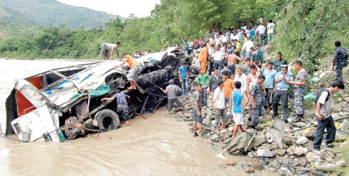 नदीमा बस खस्दा बाह्रको मृत्यु