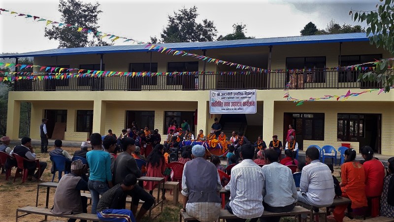 नवनिर्मित भवनको शनिबार राष्ट्रिय सभाका अध्यक्ष गणेश तिमल्सिनाले उद्घाटन गरेका थिए । १ करोड ३६ लाख लागतमा विद्यालय भवन निर्माण भएपछि स्थानीयहरु हर्षित भएका छन् । ‘हाम्रा स–साना बालबालिका पढ्ने विद्यालय भूकम्पले ध्वस्त पारेपछि अब नयाँ भवन बनाउन सकिदैँ होला भनेर निकै चिन्तित भएका थियौँ, विद्यालय ब्यवस्थापन समितिका अध्यक्ष कृष्ण बहादुर श्रेष्ठले भने ‘यो विद्यालय भवन निर्माणमा सहयोग गर्ने संस्थाको जतिनै मैले प्रशंसा गरेपनि अपुरो नै रहन्छ ।’