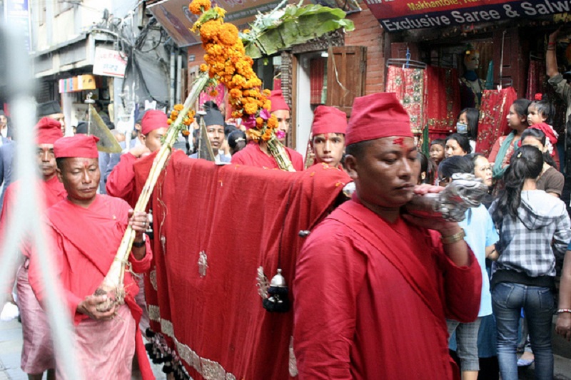 “केरामा ब्रह्माणी, दारिममा रक्तदन्तिका, धानमा लक्ष्मी, हलेदोमा दुर्गा, मानवृक्षमा चामुण्डा, उखुमा कालिका, बेलपत्रमा शिवा, अशोकमा शोकरहिता र जयन्तीमा कात्तिकी देवीको आवाहन गरी पूजा गरिन्छ, यी देवी नवदुर्गाका पार्षद् अर्थात् सहायक हुन्”, उहाँले भन्नुभयो । फूलपाती भित्र्याएपछि नौ वटै देवीको विधिपूर्वक पूजाराधना गरिन्छ । फूलपाती भित्र्याउनका लागि साइतको आवश्यकता नपर्ने प्रा डा गौतमले जानकारी दिनुभयो ।
