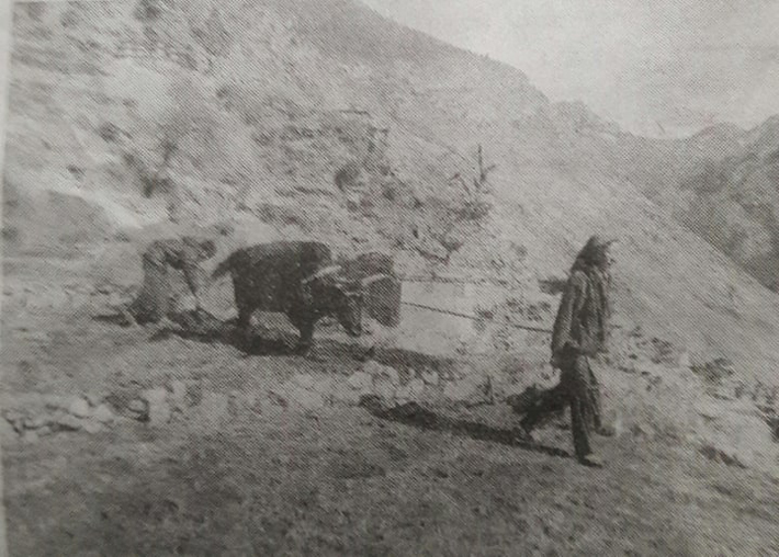 मुगु, मंसिर २४ : कर्मारोङ गाउँपालिका ५ दाउरा गाउँका ३० बर्षीय थेनसिंह लामा एउटा गोरु जोतेर बारीमा लेकाली अन्न उवा छरिरहेका छन् । लामाले पछाडीबाट अनौ समाएका छन् । उनकी पत्नी लाङ्मु एउटा गोरु डोर्याउँदै मेलो देखाउँदै छिन् । यहाँ एउटा गोरु जोत्ने पुरानो चलन छ ।