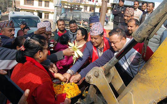 भक्तपुर, १८ पुस: मध्यपुरथिमि नगरपालिका वडा नं ४ स्थित राष्ट्रिय क्षयरोग केन्द्रदेखि शङ्खधर चोकसम्मको छ लेन सडकमा ‘सर्भिस ट्रयाक’ निर्माण शुरु भएको छ । प्रतिनिधिसभा सदस्य महेश बस्नेत र मध्यपुरथिमि नगरपालिकाका प्रमुख मदनसुन्दर श्रेष्ठले संयुक्त रुपमा आज सो ट्रयाकको शिलान्यास गर्नुभयो । सो अवसरमा पूर्वउद्योगमन्त्रीसमेत रहनुभएका सांसद बस्नेतले भक्तपुरको सडकलाई सफा, शान्त, जाममुक्त, सुरक्षित र उज्यालो सडक बनाउने अभियान सञ्चालन भएको बताउँदै सोही अभियानस्वरुप अहिले मध्यपुरथिमि नगरपालिकाका क्षेत्रमा निर्माण हुन बाँकी रहेका सर्भिस ट्रयाकको निर्माण शुरु भएको जानकारी दिनुभयो ।