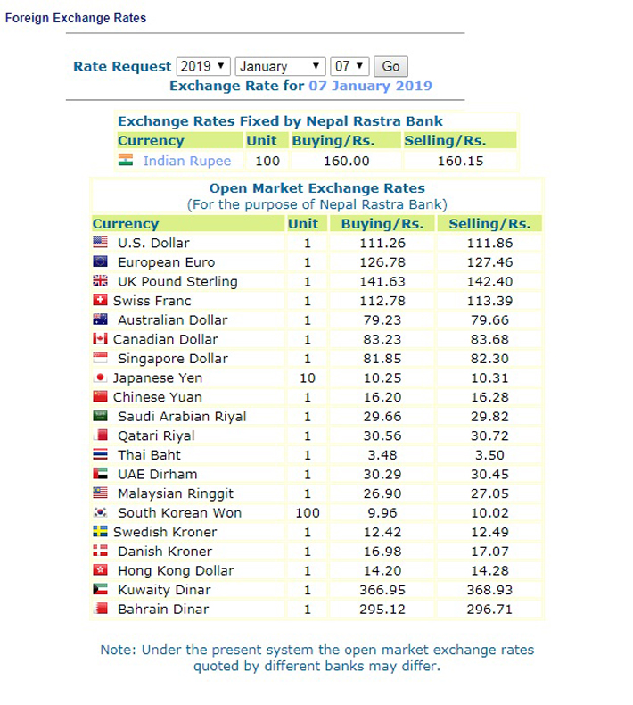 त्यस्तै एक मलेसियन रिंगिटको खरिददर मूल्य २६ रुपैयाँ ९० पैसा छ भने बिक्रिदर २७ रुपैयाँ ५ पैसा छ। त्यस्तै यूके पाउण्डको खरिददर १४१ रुपैयाँ ६३ पैसा छ भने बिक्रिदर १४२ रुपैयाँ ४० पैसा छ।
