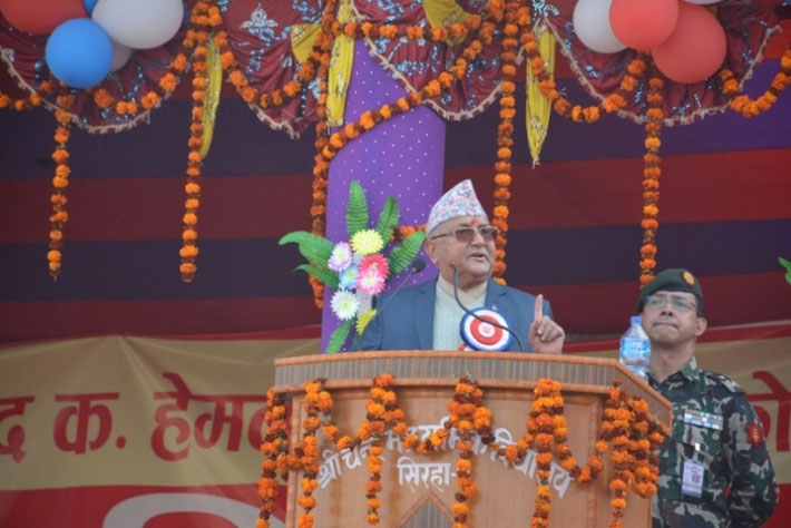 प्रधानमन्त्री ओलीले भने, ‘सिरहा जस्तै मधेसका अरु जिल्ला पनि विस्तारै बुझ्दै जानेछन्, तर कसरी बुझेनन् मलाई अच्चम लाग्छ । मधेस विकासका लागि हरेक क्षेत्रमा योजना ल्याएका छौँ । काठमाडौंसँग तराई जोड्ने द्रुत मागैदेखि देशकै ठुलो अन्तर्राष्ट्रिय विमानस्थल मधेसमा नै बन्दै छ ।’