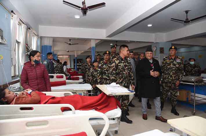 प्रधानमन्त्री ओलीले निरीक्षणको क्रममा अस्पतालको अतिविशिष्ट कक्ष, इमरजेन्सी वार्ड तथा हेमोडाइलसीस युनिटको अवलोक गरे। प्रधानमन्त्री ओलीले अस्पतालमा देखिएका कमजोरी सुधार गर्न आवश्यक निर्देशनसमेत दिएको नेपाली सेनाले जानकारी गराएको छ। अस्पतालमा प्रधानमन्त्री र रक्षामन्त्रीसँगै प्रधानसेनापति पूर्णचन्द्र थापा, स्वास्थ्य सचिव, निमित्त रक्षा सचिव, सेनाका रथी तथा अधिकृतको उपस्थिति थियो।