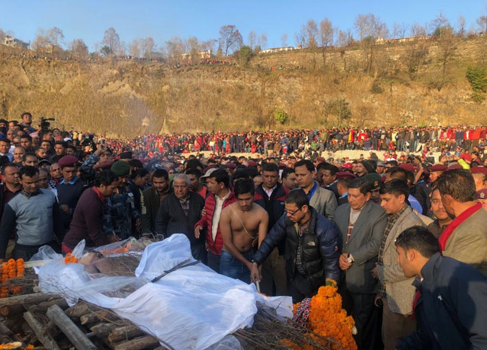 पोखरा, १७ फागुन : हेलिकप्टर दुर्घटनामा परी निधन भएका संस्कृति, पर्यटन तथा नागरिक उड्डयनमन्त्री रवीन्द्र अधिकारीको यहाँको रामघाटमा आज राजकीय सम्मानका साथ अन्त्येष्टि गरिएको छ । उहाँको पार्थिव शरीरमा श्रीमती विद्या भट्टराई, पुत्रद्वय विराज र स्वराजले दागबत्ती दिनुभयो ।