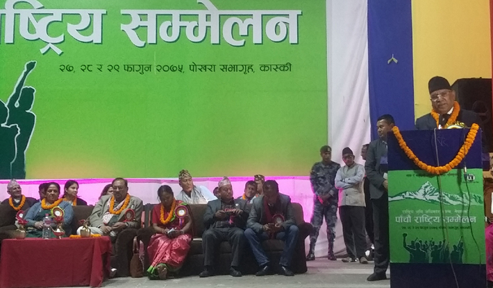 पोखरा, २७ फागुन:नेपाल कम्युनिष्ट पार्टी (नेकपा)का अध्यक्ष पुष्पकमल दाहाल ‘प्रचण्ड’ले भूमि अधिकारको समस्या वर्तमान सरकारले समाधान गर्ने बताउनुभएको छ । राष्ट्रिय भूमि अधिकार मञ्च नेपालको पाचौँ राष्ट्रिय सम्मेलनको आज पोखरामा उद्घाटन गर्दै पूर्वप्रधानमन्त्री प्रचण्डले जतिसुकै चुनौती भए पनि भूउपयोग नीति अघि बढ्ने र भूमिसम्बन्धी समस्या समाधान हुने बताउनुभयो ।