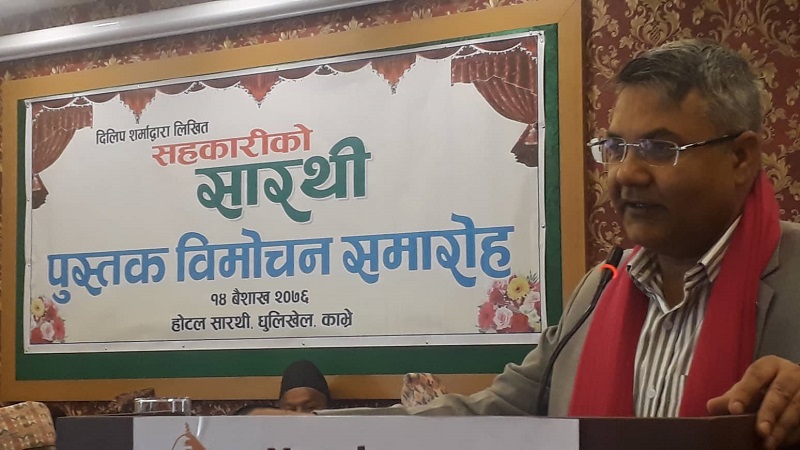 शनिबार काभ्रेको धुलिखेलमा ‘सहकारीको सारथी’ नामक पुस्तक विमोचन गर्दै उनले सहकारी संस्थाहरुले मूल्य मान्यता विर्सेर काम गरिरहेको बताए । ‘सरकारले सहकारीलाई संवैधानिक मान्यता दिएको छ, तीन खम्बे अर्थतन्त्रभित्र सरकारले सहकारीलाई राखेको छ, तर यसको काम हेर्दा त्यस्तो लाग्दैन्, उनले भने ‘सहकारीको काम विचौलिया खोज्दै हिड्ने होइन् ।’