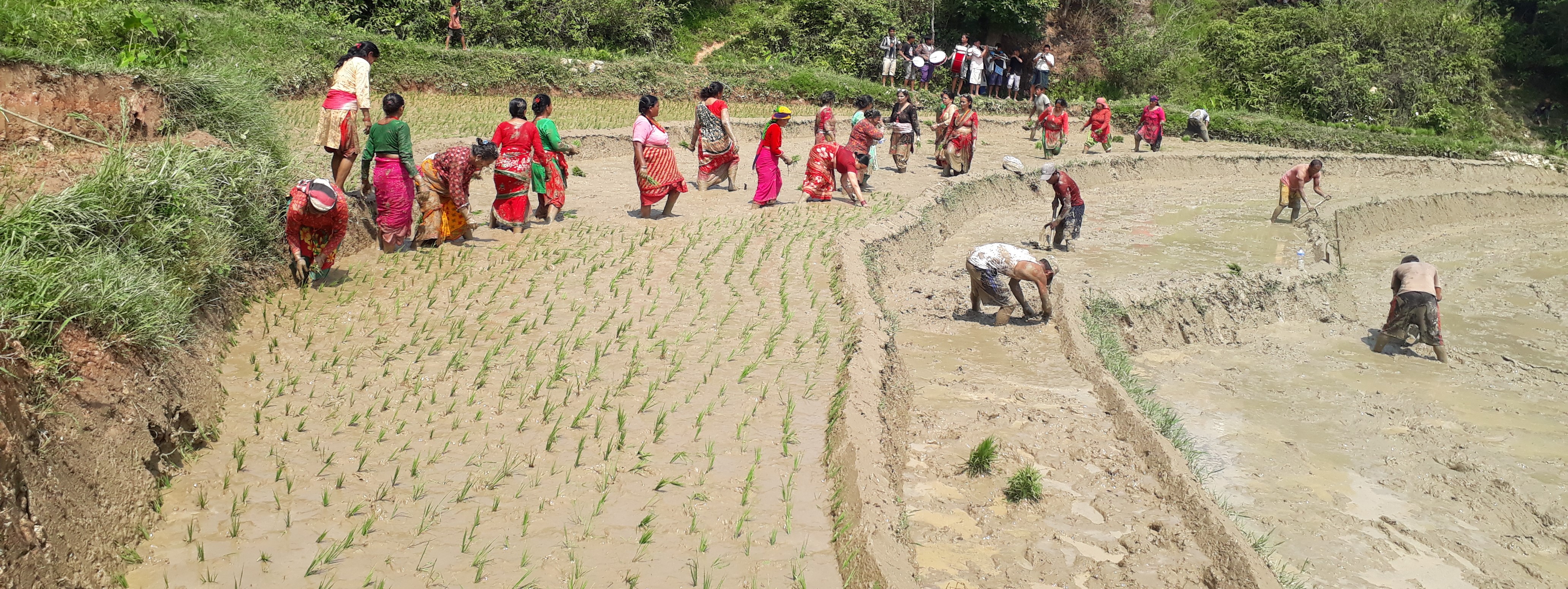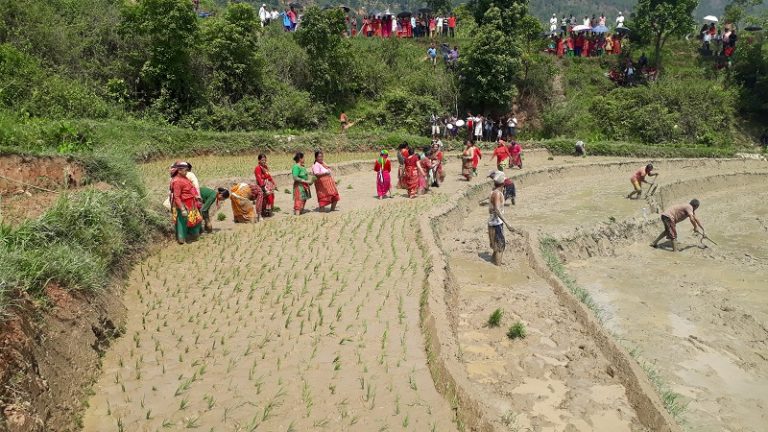 नगरपालिकाका अन्य महिला जनप्रनिधिहरु पनि खेतमा प्रवेश गरे । बीउको मुठ्ठा समाए । हिलो छ्यापाछ्याप गरे । अलिक माथि बसेका ब्यान्ड टोलीले बाजा बजाउन सुरु गरे । खेतको गह्रामा रहेका नगरप्रमूख, वडाध्यक्ष सहितका जनप्रतिनिधिहरु बाजाको तालमा माच्दै कोहि बाउसे गर्न थाले कोहि रोप्न । ‘मलाई त बेठी कै झल्को आयो, खेतका धनी इन्द्र मायाले भनिन् ‘तर पहिले पञ्चेबाजा बज्थ्यो, अहिले ब्यान्ड । नगरपालिकाको धेरै ठाउँबाट नयाँ नयाँ मान्छेहरु आए, सक्नेले काम गरे, नसक्नेले हिलो खेलेर रमाए ।’