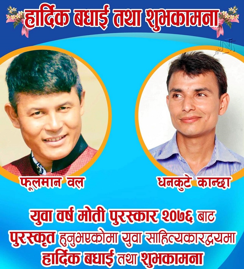 राष्ट्रिय विभूति युवाकवि मोतीराम भट्टको १५४औँ जन्मजयन्तीका अवसरमा नेपाल शिक्षा परिषद्मा आज आयोजित कार्यक्रममा विसं २०७६ को युवावर्ष मोती पुरस्कार वल र चापागाईंलाई प्रदान गरिएको हो ।