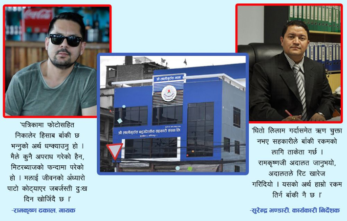 काठमाडौं , भदौ १६ : गायक रामकृष्ण ढकाललाई ‘लालीगुराँस’ शब्ददेखि विरक्त लागेर आउँछ । लालीगुराँस शब्द जोडिएको गीत गाउन ‘अफर’ आउँदा रुचि जाग्दैन, अरूलाई नै सिफारिस गर्छन् । यसको कारण हो, श्री लालीगुराँस नामधारी सहकारी संस्थाबाट ऋण लिएपछि पाएको हैरानी । ऋणका कारण उनको घरजग्गा मात्र लिलाम भएको छैन, सहकारीले आफ्नो बदनाम गर्न खोजेको उनको बुझाइ छ ।