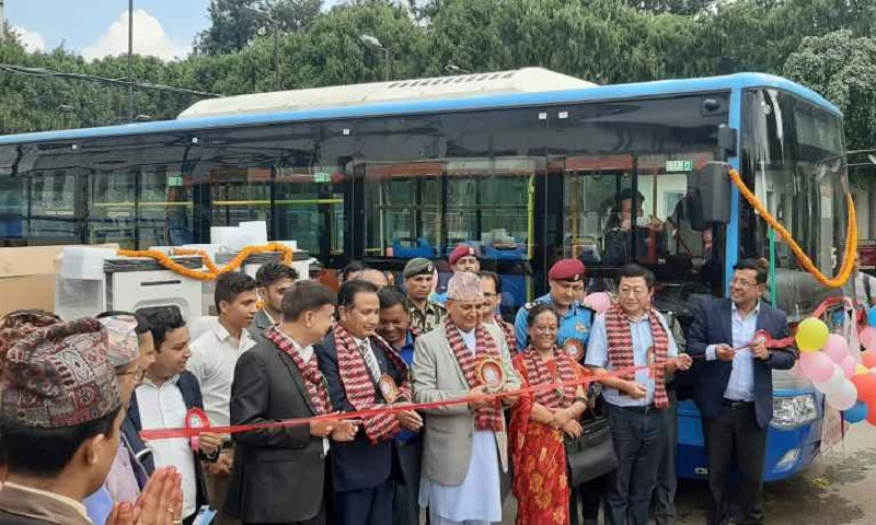 काठमाण्डौ, २३ भदौ : काठमाडोंको भृकुटीमण्डपमा रहेको नेपाल पुलिस क्लबमा आज निकै तामझामका साथ उप्रधान तथा रक्षा मन्त्री ईश्वर पोखरेलले आज विद्युत बसको उद्घाटन गरेका छन् । काठमाण्डौका सडकमा धुलो, धुवाँरहित र वातावरणमैत्री विद्युतीय बसले प्रदुषणबाट उकुमुकस भएको काठमाडौंलाई केही राहत पुग्ने विश्वास गरिएको छ ।
