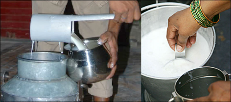 कोहलपुरका विष्णु पोखरेल र शारदा पोखरेलले सञ्चालन गरेको गाई फार्ममा यस्तै पद्धति बसालिएको छ । “शुरु शुरुमा गाई दुहुँदै गर्दा दूध माग्न आउँथे । हामी व्यस्त हुन्थ्यौँ । आफैैँ नापेर लैजान भन्यौँ”, विष्णुले शुरुआती दिन सम्झँदै भन्नुभयोे, “आफँै नापेर लैजान पाउँदा उहाँहरु दङ्ग, हामीलाई पनि काममा सहयोग भयो । सबै विश्वासमा चलेको छ । ग्राहकलाई शुद्ध दूध खुवाउन पाउँदा खुशी छु ।”