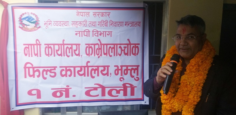 लालपूर्जा वितरणका लागि स्थापना गरिएको नापी र मालपोत फिल्ड कार्यालयको शुत्र्रmबार सञ्चार तथा सुचना प्रविधि मन्त्री गोकुल बास्कोटाले उद्घाटन गरे ।