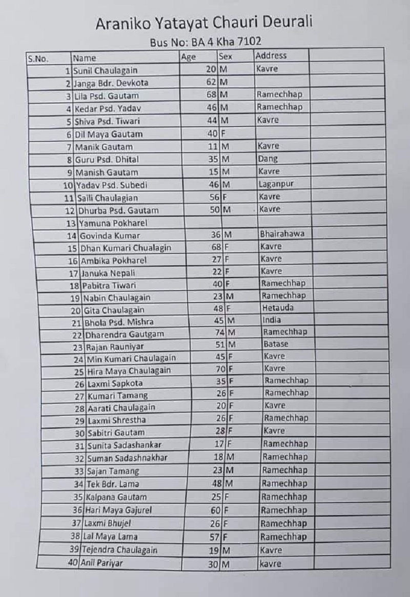 धुलिखेल, २१ फागुनः रामेछापको गुराँसेबाट काठमाण्डौका लागि हिडेको यात्रुबाहक बस काभ्रेको ढाँडखर्कमा दुर्घटनामा परेको छ । दुर्घटनामा ४० जना घाइते भएको छन् ।