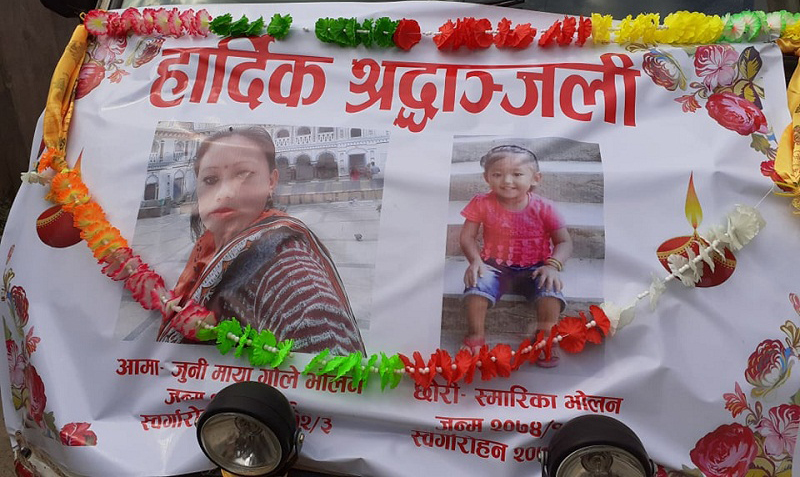 पापी टिपरले बहिनी जुनी माया गोले र भाञ्जी स्मारिका भाेलनको अकालमै ज्यान लिएको कुरा सायद आकाशलाई पनि थाहा भयो होला । निर्दोष यी दुई आत्मा झल्दै गर्दा समुन्द्रपारीको देश अमेरिकामा म एउटा चेली गुमाउँदाको बिछोडमा तड्पिरहेको छु । धेरै कोशिस गरे बहिनी अन्तिम पटक भएपनि तिम्रो अनुहार हेर्ने । तर विश्वभर फैलिएको कोरोना भाइरसका कारण यहाँ पनि घर बाहिर निस्कन दिएका छैन । कस्तो अभागि रहेछु जुनी । म त तिम्रो जेठो दाई । हाम्रो तमाङ संस्कृति अनुसार चेलिबेटिको मृत्यु पश्चात माइतीको उपस्थिति बेगार दाहस्कार गर्नै पाइदैँन । तर मुटु माथि ढुंगा राखेर यो जिम्मा डाँडामाथि घाम भइसकेका बुबा र भाइलाई दिएको छु । माफि त गर्छौँ नी है ।