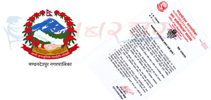धुलिखेल, १७ चैतः काभ्रेको मण्डनदेउपुर नगरपालिकाले भोलीदेखि नगरपालिका क्षेत्रबाट बाहिर नजान र बाहिरबाट नगरपालिका क्षेत्रभित्र प्रवेश गर्न नदिने भएको छ । कोरोना भाइरस एक अर्काबाट सर्न सक्ने भन्दै मानिसको आवतजावतमा लकडाउन अवधिभर रोक लगाइएको प्रमुख प्रशासकीय अधिकृत प्रणराज न्यौपानेले जानकारी दिए ।