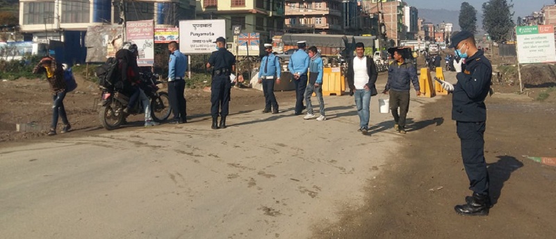 प्रहरीले आफु मातहातका सबै युनिटलाई कडा निर्देशन दिदैँ अत्यावश्क बाहेक हिड्डुल गर्ने जो कोहिलाई पनि नियन्त्रणमा लिन भनेको छ । ‘यो विषम पस्थितिमा पनि रमिते हेर्नेको संख्या धेरै देखियो, डिएसपी थापाले भने ‘हामीले त्यस्ता ब्यक्तिलाई नियन्त्रणमा लिएका हौँ, यो अभियान जारी रहन्छ, सबै युनिटलाई त्यहि किसिमको निगरानी राख्न भनेका छौँ ।’