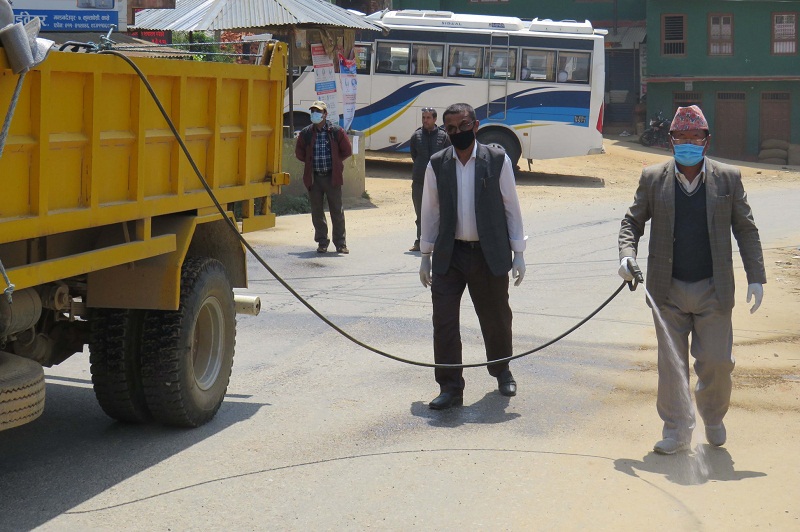 मण्डनदेउपुरमा पनि संक्रमण नियन्त्रक औषधि छर्किन सुरु