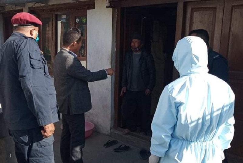 हेलम्बु गाउँपालिका अध्यक्ष ह्योल्मो विदेशबाट फर्किएकाको घर–घरमा