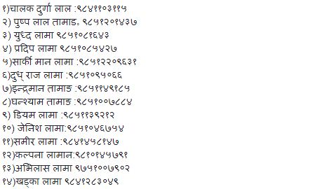 सम्पर्क गर्ने नम्बर