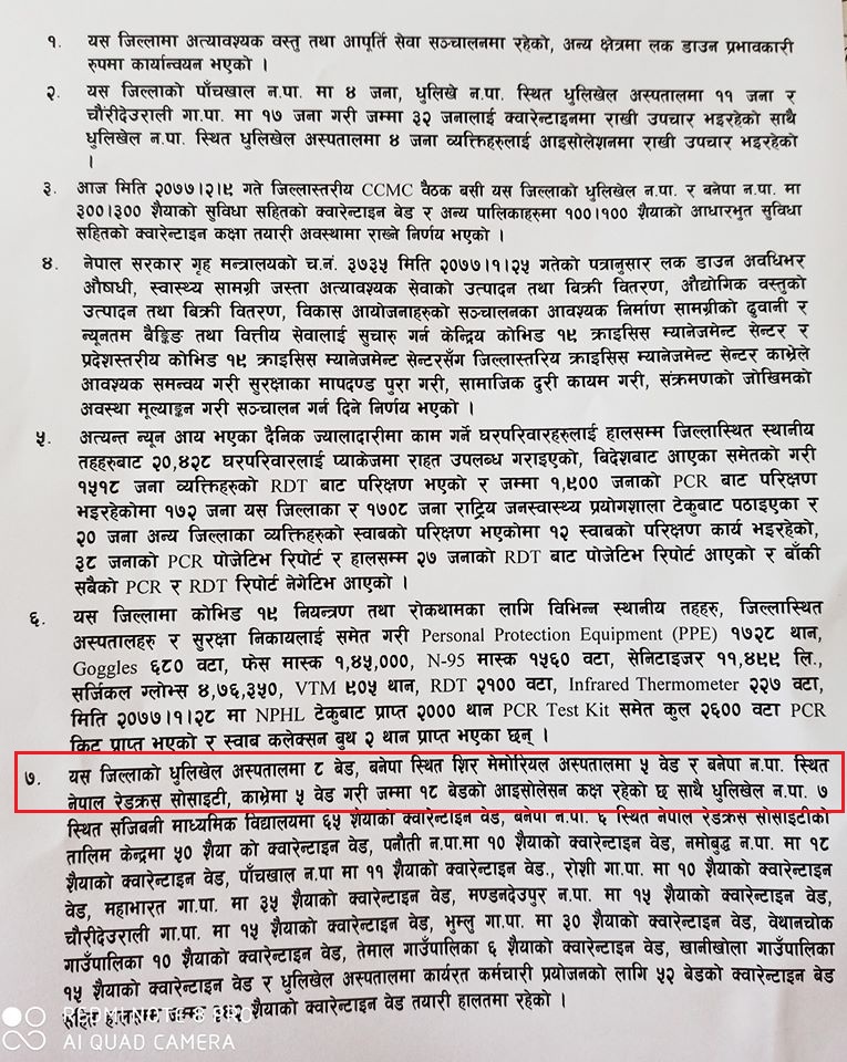 जिल्ला कमाण्ड पोष्ट काभ्रेको विवरण झुट्टो ‘रेडक्रसमा आइसोलेसन कक्ष नबनेको खुलसा’