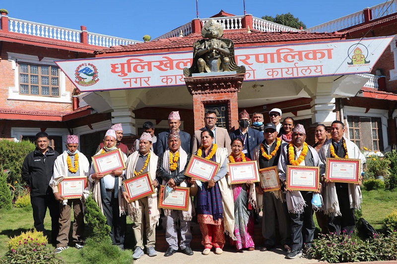 धुलिखेल, २६ कात्तिकः धुलिखेल नगरपालिकाले सुबिधा सहित सेवा निबृत्त हुन लागेका शिक्षकलाई सम्मान सहित बिदाई गरेको छ । नगरपालिकाभित्र अध्यापन गराइ सेवा निबृत हुने लागेका १० जना शिक्षकहरुलाई आज सम्मान सहित विदाई गरिएको नगरपालिकाका शिक्षा शाखाले जनाएको छ ।