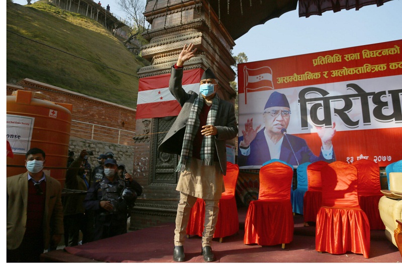 संसद विघटनको विरोधमा भक्तपुर क्षेत्र नम्बर २ मा आयोजित विरोध प्रदर्शनलाई सम्बोधन गर्दै देउवाले भने, ‘यो मुद्दा अदालतमा छ । हाम्रो पार्टी अदालतको निर्णय मान्ने पार्टी हो ।’
