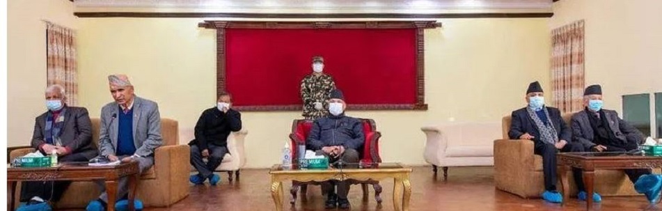 प्रधानमन्त्री ओलीले अविश्वासको प्रस्ताव ल्याएर सरकारलाई हटाउने हिम्मत कसैको नरहेको भन्दै सांसदहरुलाई उत्साहजनक रुपमा अगाडि बढ्न निर्देशन दिएको राष्ट्रिय सभाका प्रमुख सचेतक खिमलाल भट्टराईले जानकारी दिए । भट्टराईका अनुसार बैठकमा प्रतिनिधिसभाबाट ९१ र राष्ट्रिय सभाबाट २४ जना सांसद्हरु गरी १ सय १५ जनाको उपस्थित थिए ।
