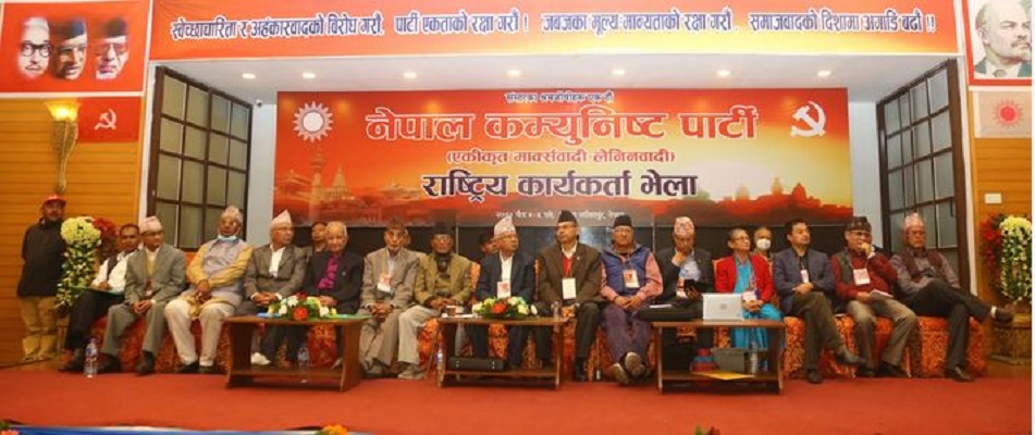 ३) सर्वोच्च अदालतले गत फागुन २३ गते नेपाल कम्युनिष्ट पार्टीको दर्ता खारेज गर्नुका साथै नेकपा (एमाले) र नेकपा (माओवादी केन्द्र) पूर्ववत् स्थितिमा रहने फैसला गरेपछि नेकपा (एमाले) का सबै कमिटी, सम्बद्ध जनसंगठन र पेशागत संगठन लगायत सबै संरचनाहरु उक्त दुई कम्युनिष्ट पार्टीहरुको एकीकरण पूर्वको स्थितिबाट विधिसम्मत सञ्चालन र क्रियाशील तुल्याउनु कानूनसम्मत र पद्धतिसम्मत हुन्छ । यसरी पार्टीलाई विधान, विधि र पद्धति अनुरुप सञ्चालन गरेर मात्र नेपालको कम्युनिष्ट आन्दोलनलाई जोगाउन सकिन्छ । यसलाई क्षतविक्षत तुल्याउँदै राष्ट्रिय स्वाधीनतालाई समेत कमजोर बनाउने सबै प्रकारका षडयन्त्रहरुलाई विफल गर्दै नेकपा (एमाले) लाई एकताबद्ध र सुदृढ बनाउन सकिन्छ । यसको विपरीत सर्वोच्च अदातलको फैसलामा नेकपा (एमाले) र नेकपा (माओवादी केन्द्र) का बीच पुनः एकीकरणको सम्भावनाबारे छलफल गर्न निर्वाचन आयोगले दिएको १५ दिनको समयको उपयोग गर्दै तत्सम्बन्धमा पार्टीको स्थायी कमिटी, पोलिटव्युरो र केन्द्रीय कमिटीका बैठक बोलाई छलफल गर्नुको साटो गत फागुन २८ गते आफ्नो गुटका सीमित व्यक्तिहरु बाहेकका केन्द्रीय कमिटी सदस्यहरुलाई कुनै जानकारी नगराई प्रधानमन्त्रीको सरकारी निवासमा गुटको भेला गरी पार्टी विधान विपरीत स्वेच्छाचारी किसिमले पार्टी विधान संशोधन, केन्द्रीय कमिटीका पदाधिकारीहरुको जिम्मेवारी हेरफेर र परिवर्तन तथा नेकपा (एमाले) को सदस्य नै नरहेका केही व्यक्तिहरुलाई केन्द्रीय कमिटीमा मनोनयन गर्ने जस्ता अवैध निर्णय र स्वेच्छाचारी कार्यकोे यो भेला तीब्र विरोध गर्दछ । यस प्रकारको कार्य सर्वोच्च अदालतको फैसलाको मर्म विपरीत तथा नेकपा (एमाले) को एकतामा भाँजो हाली पार्टीलाई विभाजन गर्दै अन्ततः नेपालको कम्युनिष्ट आन्दोलनलाई कमजोर तुल्याउने र विसर्जन गर्नेतर्फ परिलक्षित रहेको छर्लङ्गै छ । अतः पार्टी विधान, पद्धति र नेकपा (एमाले) को सिद्धान्त, नीति र अभ्यास विपरीत अध्यक्ष पदमा रहनुभएका केपी शर्मा ओलीको तर्फबाट भएका कथित निर्णय र कामहरुलाई यो भेला पूर्णतः अस्वीकार गर्दछ ।