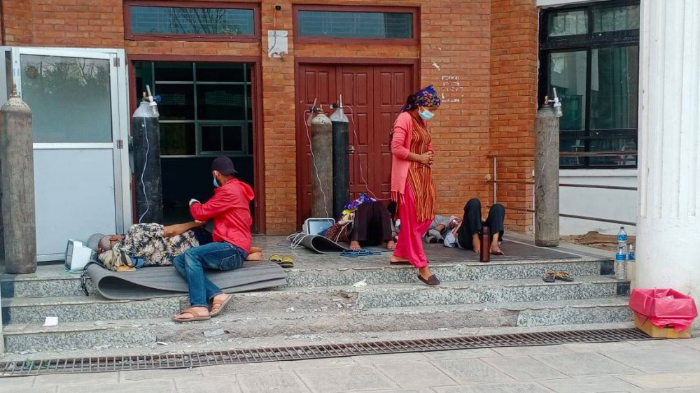 दाङ, १८ बैसाख : दाङमा कोरोनाका बिरामीलाई उपचार गर्न अस्पतालमा बेड अभाव यथावत छ । कोरोना विशेष अस्पतालमा बिरामीको चाप बढेपछि अस्पताल बाहिर बरन्डामा उपचार भइरहेको छ । अस्पतालको बरण्डामा राखेर उपचार गर्न थालिएको अस्पताल प्रशासनले जनाएको छ ।