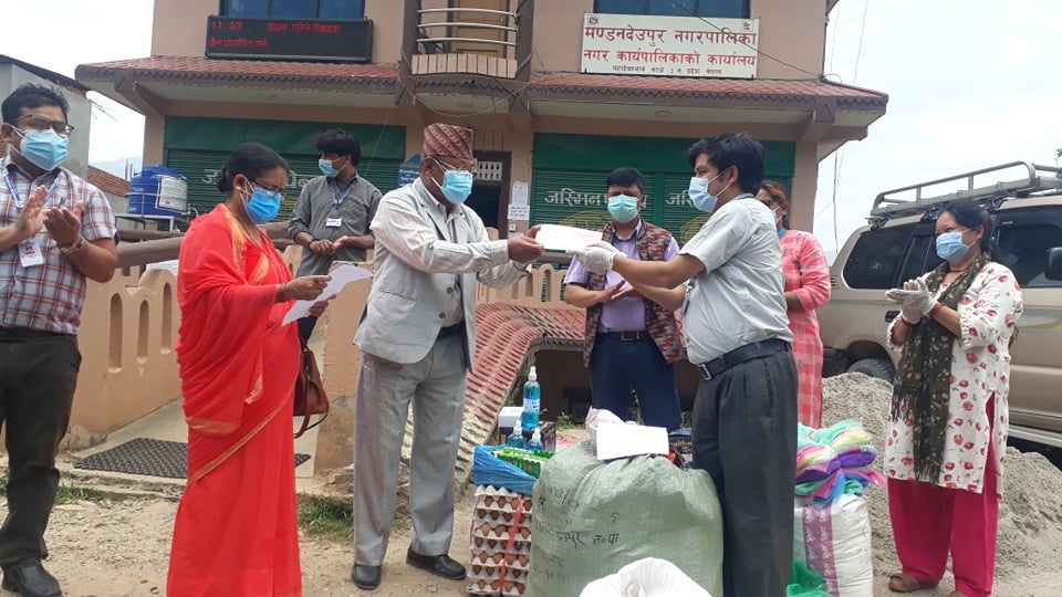 कोभिड–१९ कोरोना भाईरस नियन्त्रण रोकथाम तथा व्यवस्थापनका लागि स्वास्थ्य सामग्री संस्थाका कार्यकारी निर्देशक चुपबहादुर थापाले नगरप्रमुख टोकबहादुर वाईवा र उपप्रमुख निर्मला शाहीलाई हस्तान्तरण गर्दै सामाजिक संघ संस्थाले नागरिकको सुखदुःखमा साथ दिनुपर्ने बताउनुभयो । संस्थाले मेलमिलापको क्षेत्रमा कार्य गर्दै आएको र कोभिड महामारीबाट नागरिकहरु समस्यामा परिरहेको बेला संस्थाको तर्फबाट भेटघाट र सानो सहयोग मात्रै उपलब्ध गराएको बताउँदै थापाले भने, ‘ठूलो सहयोग गर्न नसके पनि विपदमा परेका नागरिकलाई भेटघाट मात्रै गर्दा पनि सान्त्वना मिल्छ ।’ सहयोग सामग्री हस्तान्तरण कार्यक्रममा आफ्नो कार्यक्षेत्र रहेका सम्पूर्ण जिल्लाहरुमा स्वास्थ्य सामग्री सहयोग गर्ने योजना बनाएको संस्थाकी क्षेत्रीय संयोजक रिता मानन्धरले बताउनुभयो ।