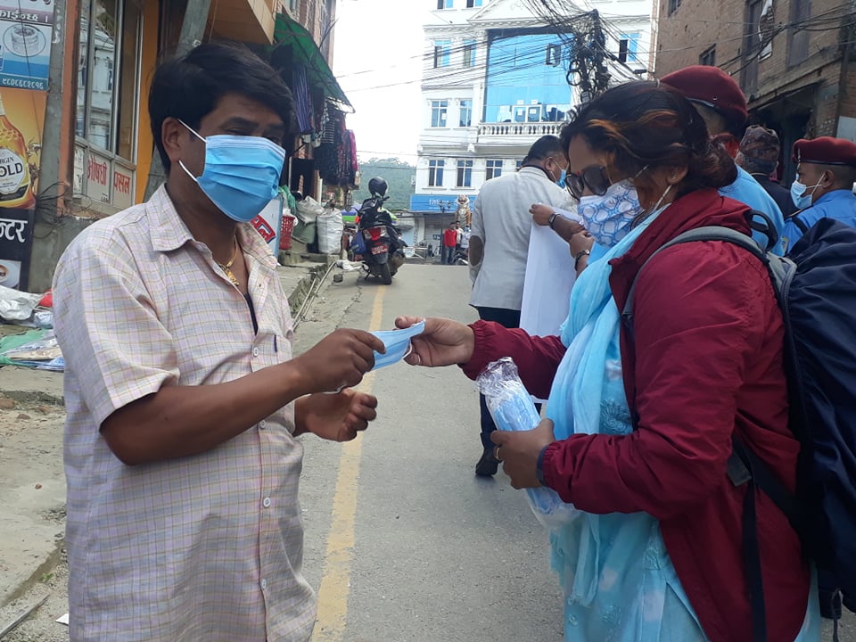 धुलिखले २७ साउन : नेपाल सरकारको मास्क अभियान कार्यक्रमलाई प्राकृतिक स्रोत द्धन्द रुपान्तरण केन्द्र नेपालले मास्क हस्तान्तरण गरी सहयोग गरेको छ । काभ्रेको धुलिखेल बसपार्कबाट शुरु भएकोे मास्क खोई अभियानका लागि दुईहजार प्रति मास्क प्रमुख जिल्ला अधिकारी शिवराम पोखरेल, र प्रहरी प्रमुख भुपेन्द्र खत्रीलाई संस्थाका क्षेत्रिय संयोजक रीता मानन्धरले साउन २६ गते हस्तान्तरण गर्नुभएको थियाे ।