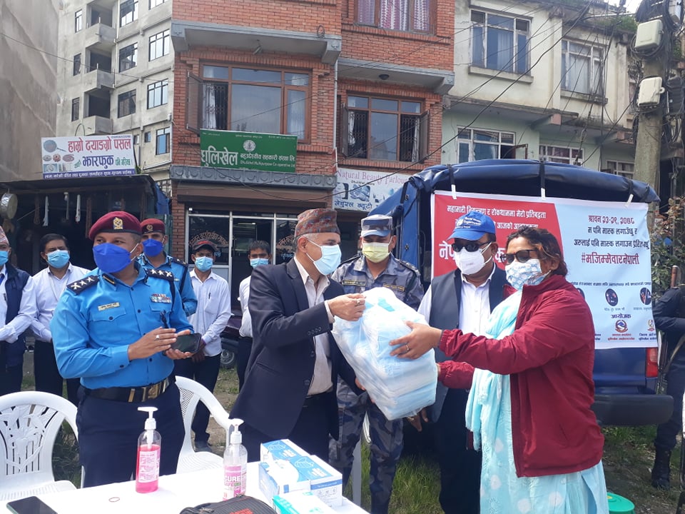 कोरोना भाइरस संक्रमण रोकथाम, नियन्त्रण तथा व्यवस्थापन गर्न सरकारले संचालन गरेर्को मास्क खोई’ अभियानलाई सहयोग गर्ने उदेश्यले एक हजार प्रति मास्क वितरण गरेको हो ।