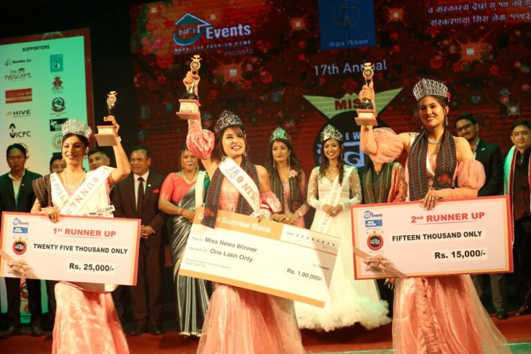 १७ युवतीले अन्तिम स्पर्धा गरेको १७ औं संस्करणको मिस नेवाः नेपाल अन्तर्गत, फ्रष्ट रनरअपको उपाधि ऋषिदा श्रेष्ठ र सेकेन्ड रनरअपको उपाधि मिनाशा मर्हजनले जितेका छन् ।