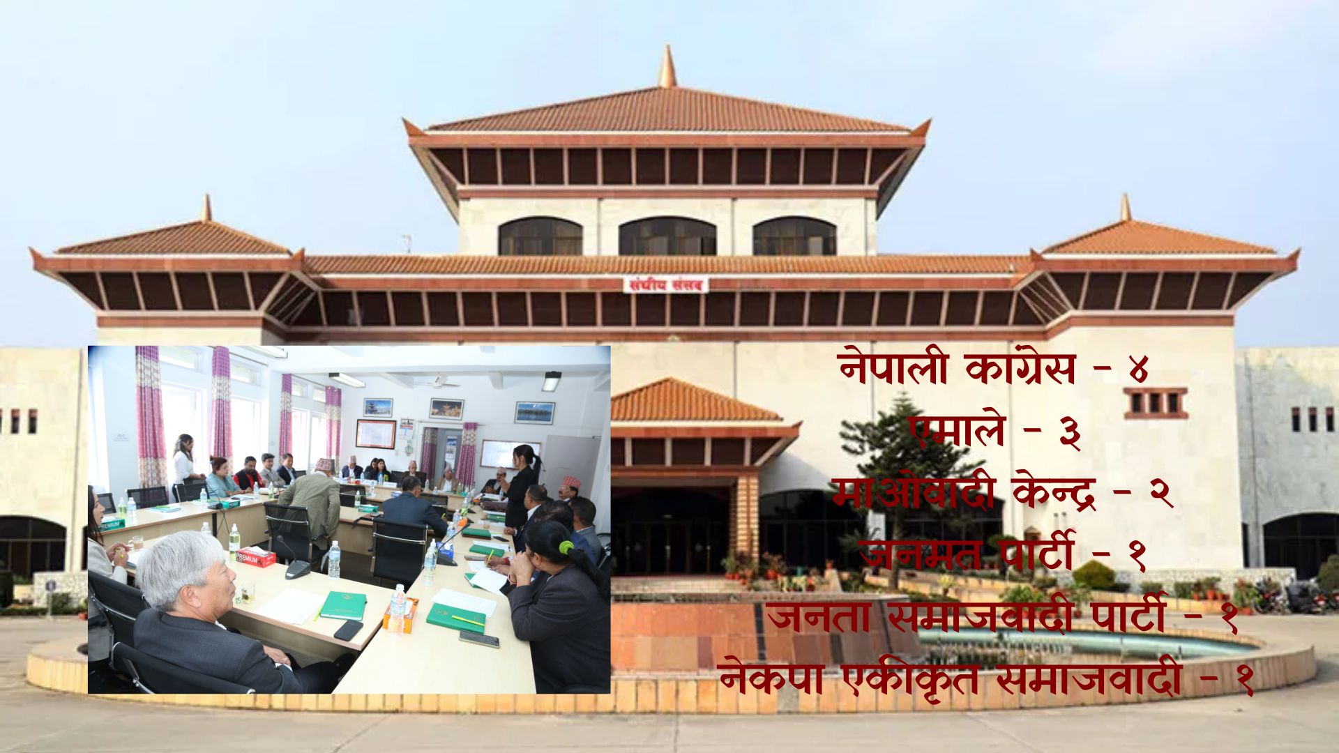 त्यस्तै, एमालेले सार्वजनिक लेखा समिति र महिला तथा सामाजिक मामिला समिति सभापतिका लागि उम्मेदवारी दिनेछ । माओवादी केन्द्रले कानुन, न्याय तथा मानव अधिकार समिति र पूर्वाधार विकास समितिको नेतृत्व गर्ने छ । एकीकृत समाजवादीले शिक्षा स्वास्थ्य तथा सूचना प्रविधि समिति, जनता समाजवादी पार्टीले अन्तर्राष्ट्रिय सम्बन्ध र पर्यटन समिति र जनमत पार्टीले उद्योग तथा वाणिज्य र श्रम तथा उपभोक्ता हित समिति पाएका छन् ।