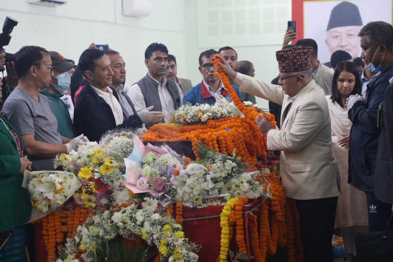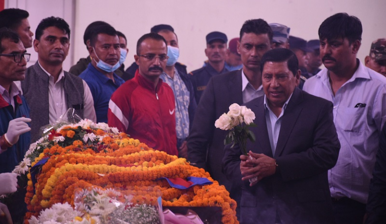 यस्तै पूर्वराष्ट्रपति विद्यादेवी भण्डारी पनि च्यासलमा रहेको एमाले केन्द्रीय कार्यालय पुगी पूर्वसभामुख नेम्वाङलाई श्रद्धाञ्जली दिनुभएको छ ।
