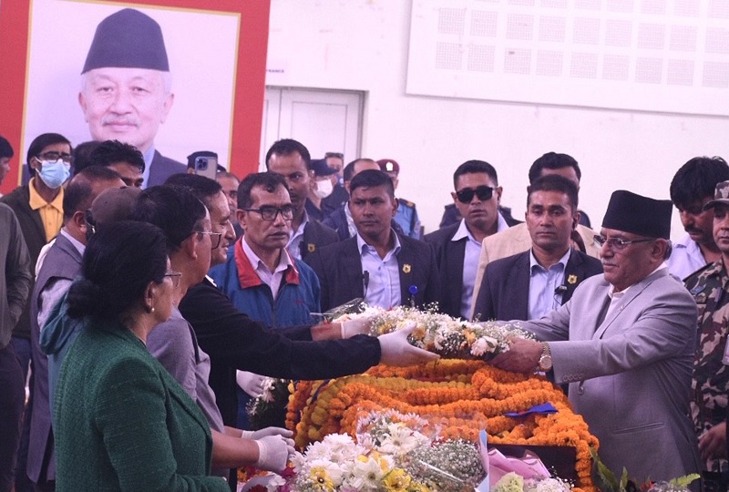 काठमाडौं । प्रधानमन्त्री पुष्पकमल दाहाल प्रचण्डले नेकपा एमालेका उपाध्यक्ष एवम् संसदीय दलका उपनेता सुवास नेम्वाङप्रति श्रद्धाञ्जली अर्पण गर्नुभएको छ । प्रधानमन्त्री प्रचण्ड ललितपुरको च्यासलमा रहेको एमालेको केन्द्रीय कार्यालयमा पुगी त्यहाँ राखिएको नेम्वाङको पार्थीव शरीरमा फूलमाला चढाई श्रद्धाञ्जली अर्पण गर्नुभएको हो ।