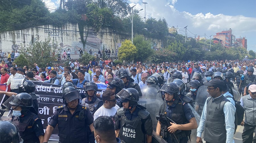माइतीघर नयाँबानेश्वर सडकखण्डमा शिक्षकहरुले प्रदर्शन गर्दा केहीबेर सवारी आवागमन समेत प्रभावित हुने गरेको छ ।